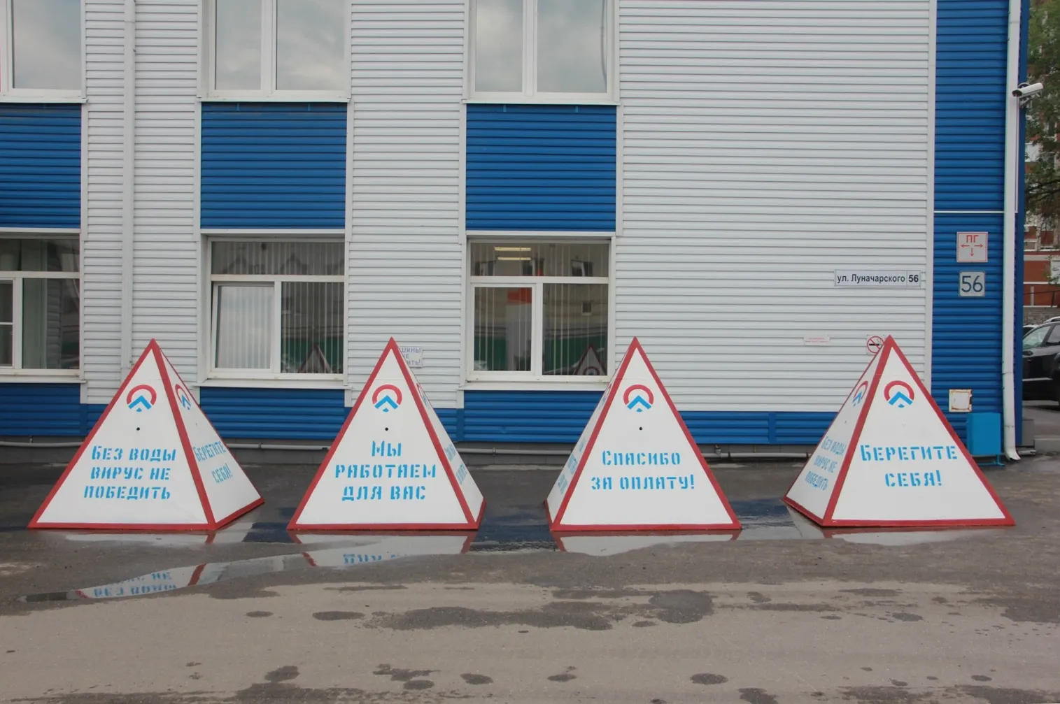 Предприятие изготовило пирамиды благодарности. На них нанесли различные надписи: "Без воды вирус не победить", "Мы работаем для вас", "Спасибо за оплату" и "Берегите себя". Из-за того что такие знаки не поставишь в квартирах, коммунальщики расставили их у офиса "РКС-Самара" около Луначарского 56.