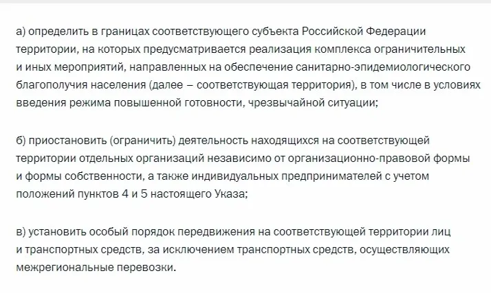 Владимир Путин пояснил, что главам субъектов предоставят дополнительные полномочия. До конца недели они должны определить конкретный набор профилактических мер для своего региона.