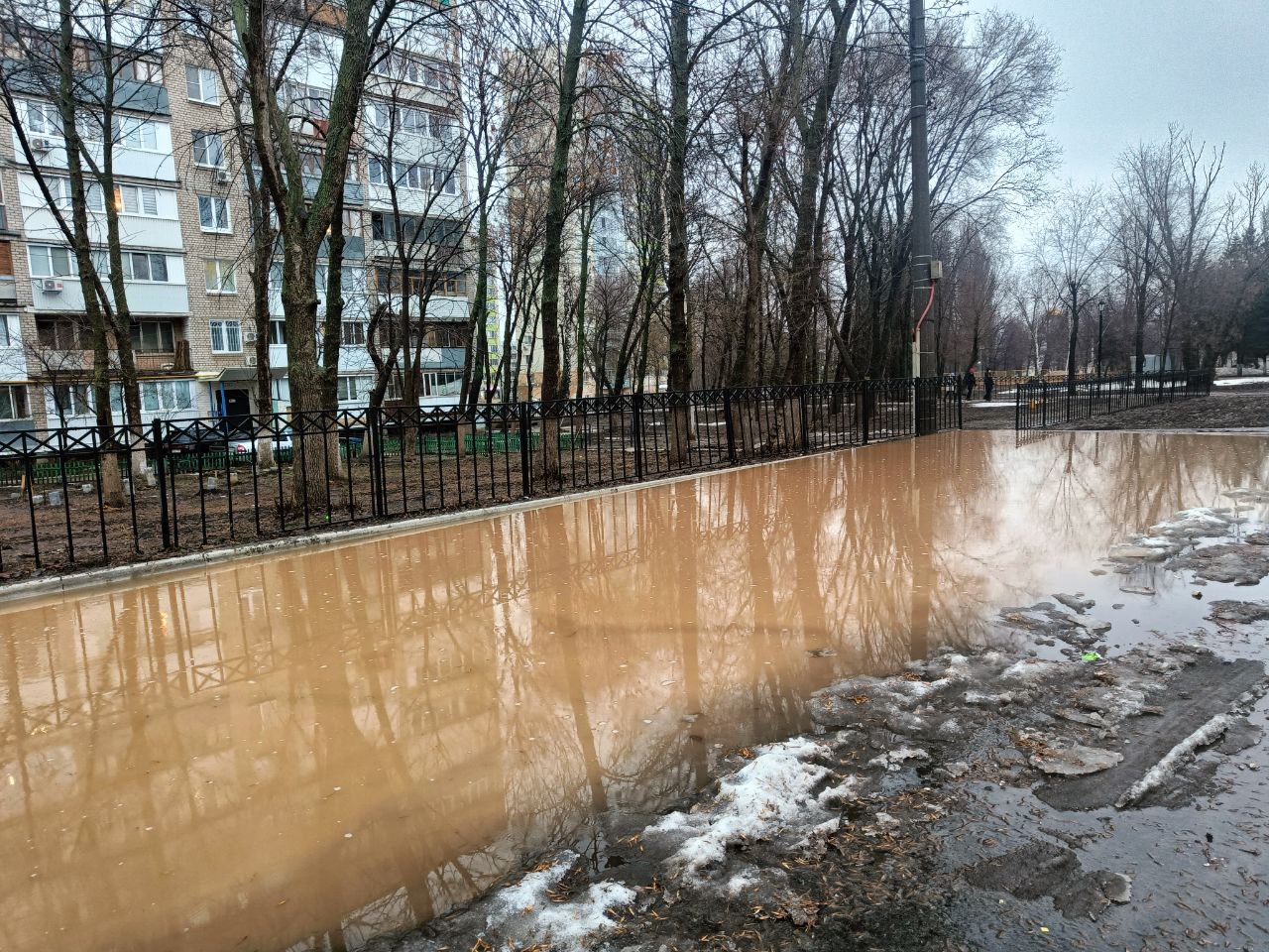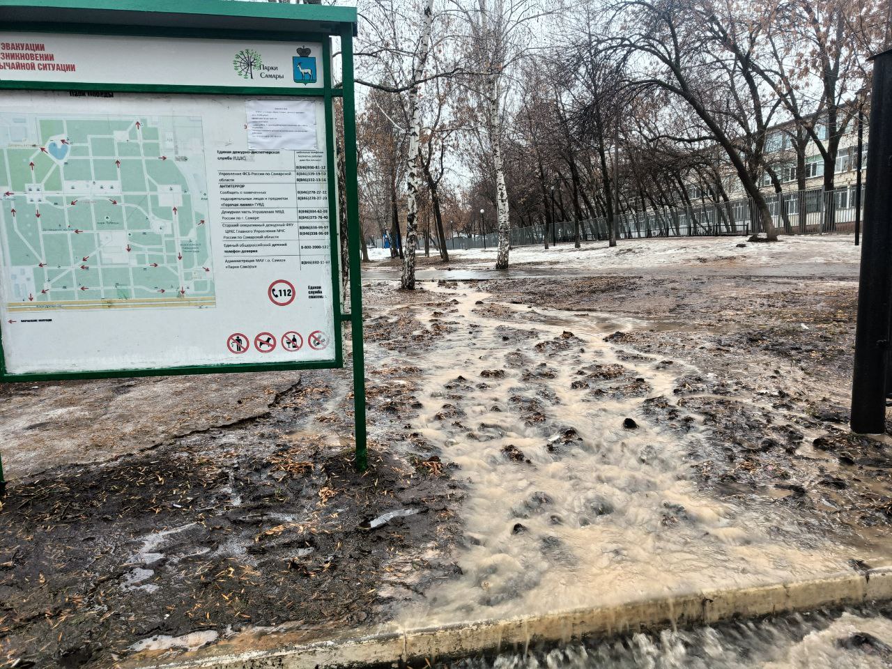 В воскресенье, 16 марта, местные жители пожаловались на потоп в парке Победы. Судя по кадрам, горожане наблюдают многочисленные "реки" и огромные лужи. Откуда именно шел прорыв непонятно.