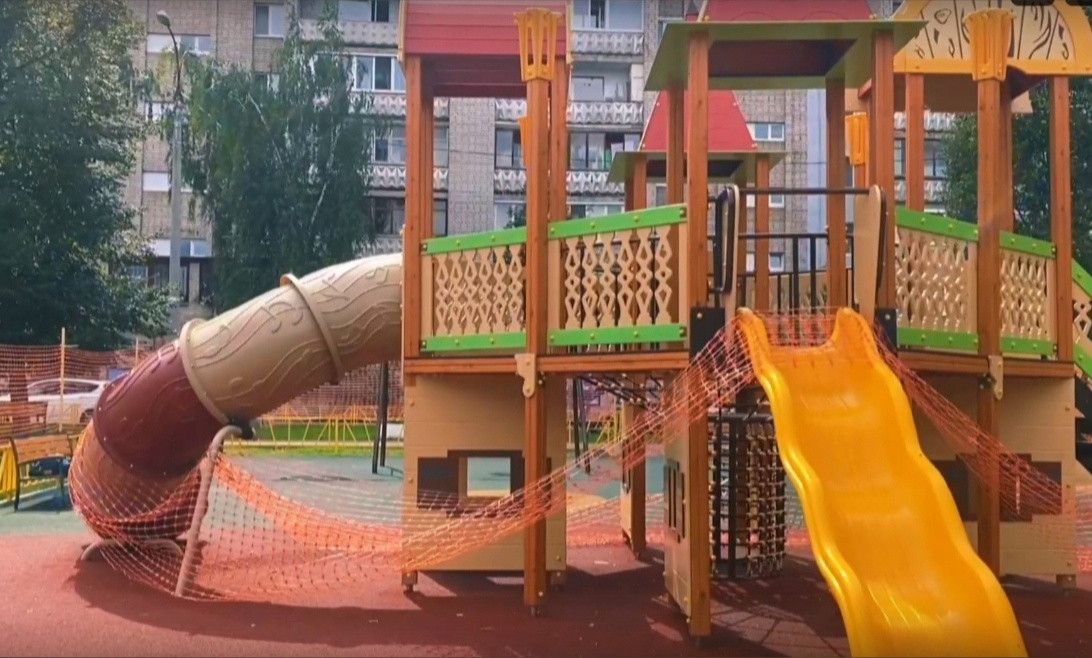 Здесь расширили внутриквартальные проезды и увеличили количество парковочных мест. Помимо этого, во дворе заасфальтировали тротуарные дорожки, установили детскую и спортивную площадки с безопасным антитравматическим покрытием и зоны отдыха.
