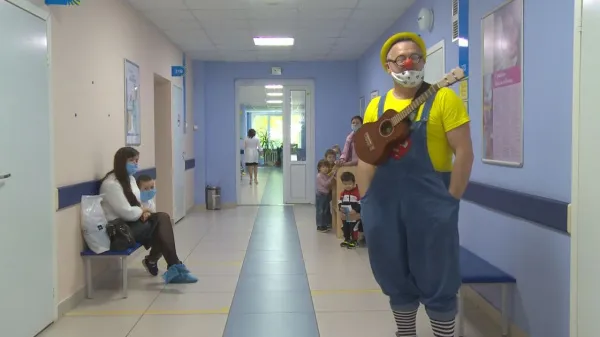 В детском отделении одной из поликлиник Самары сегодня устроили настоящий праздник. Маленькие пациенты бесстрашно заходили в кабинет врача на прививку, ведь у них была особая поддержка - веселый клоун с гавайской гитарой. Так прошла акция "Грипп - это вам не шутки".