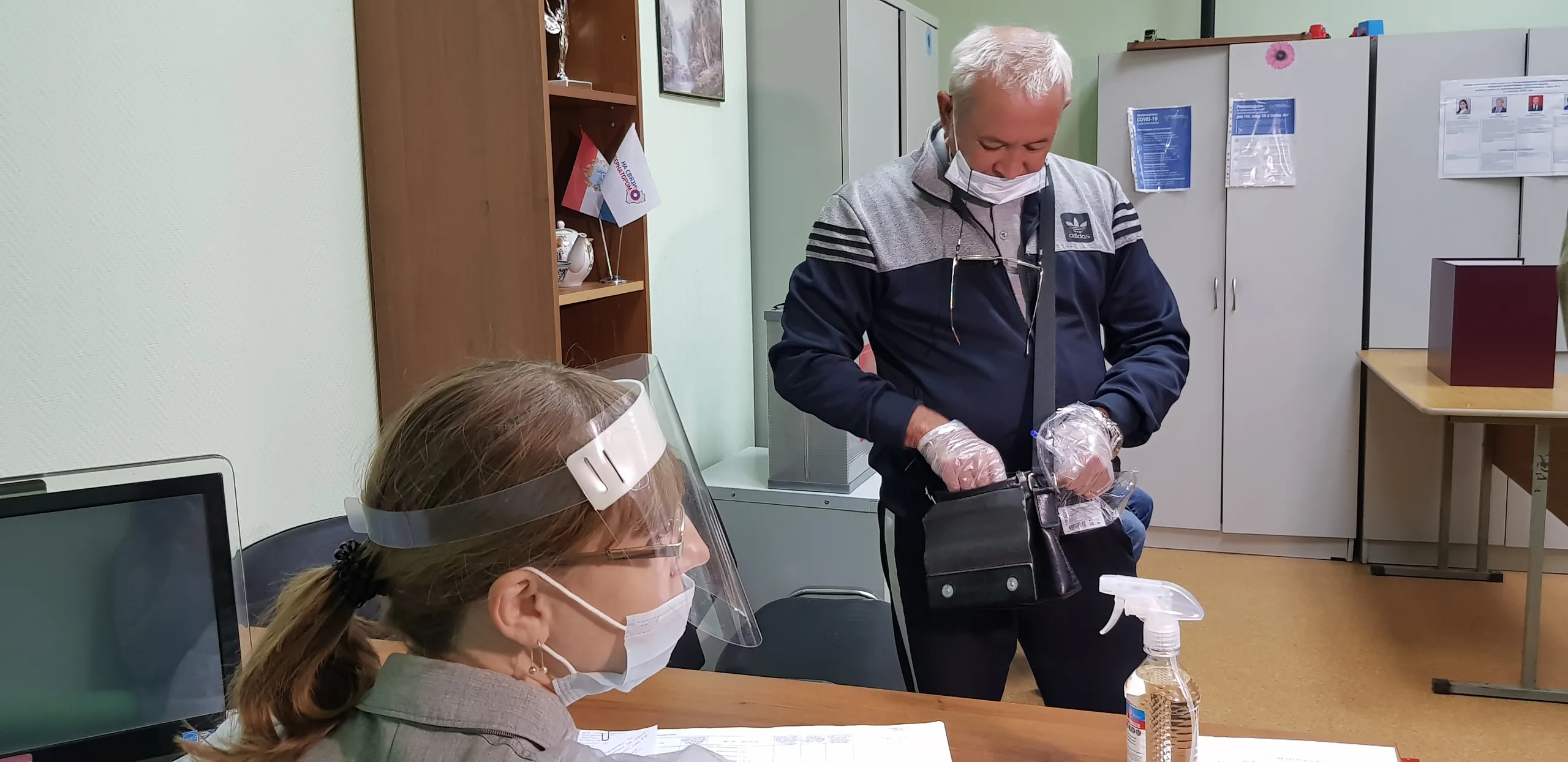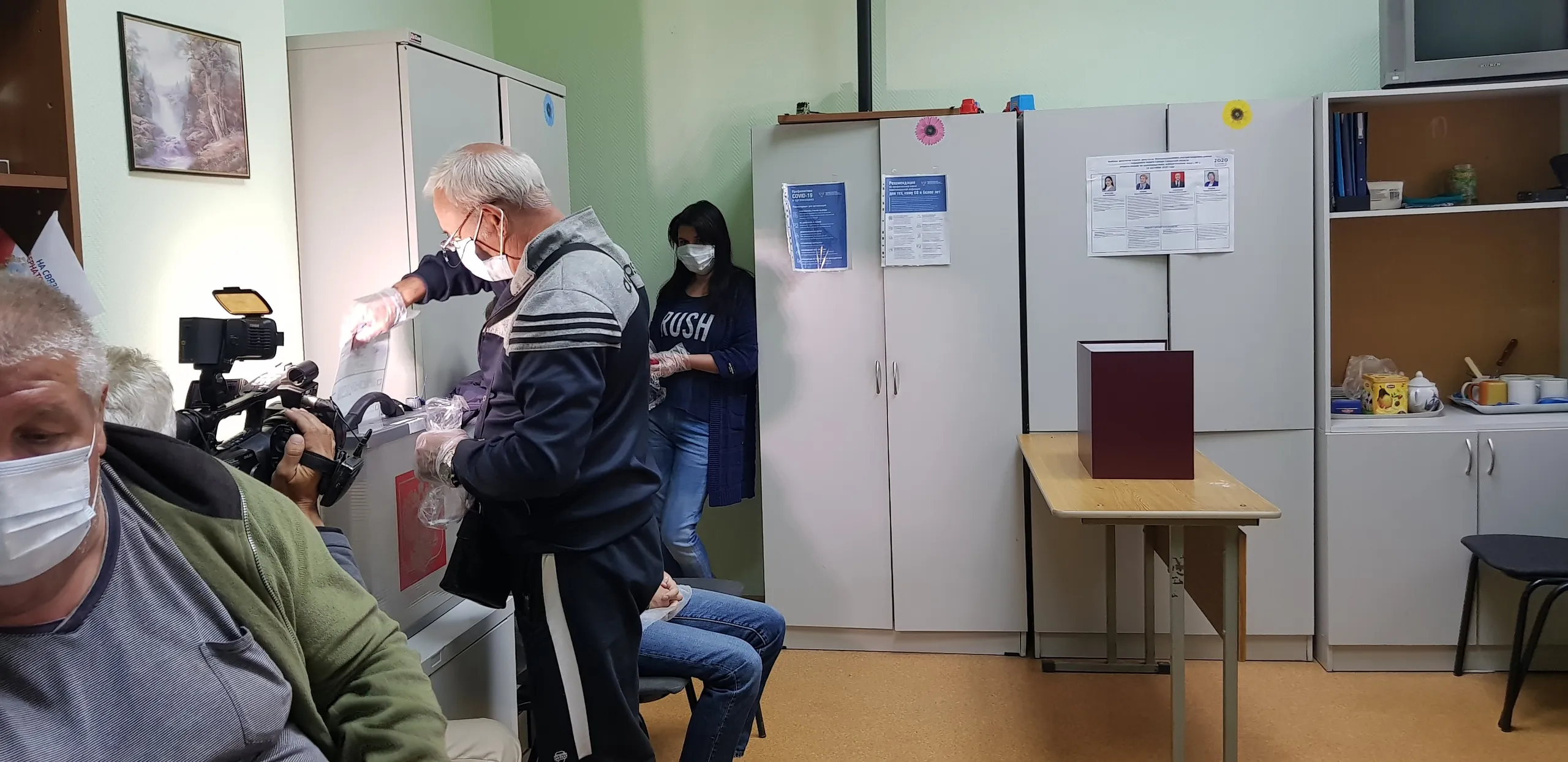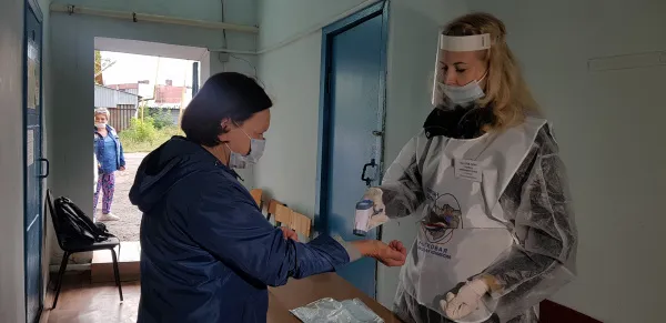 За первый час работы участка проголосовало больше 10 человек. Голосующим выдают средства индивидуальной защиты, ручку, соблюдается социальная дистанция.