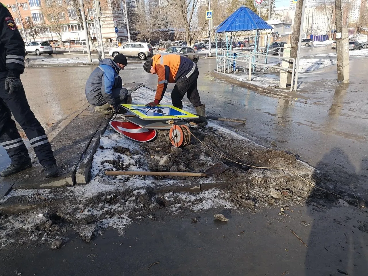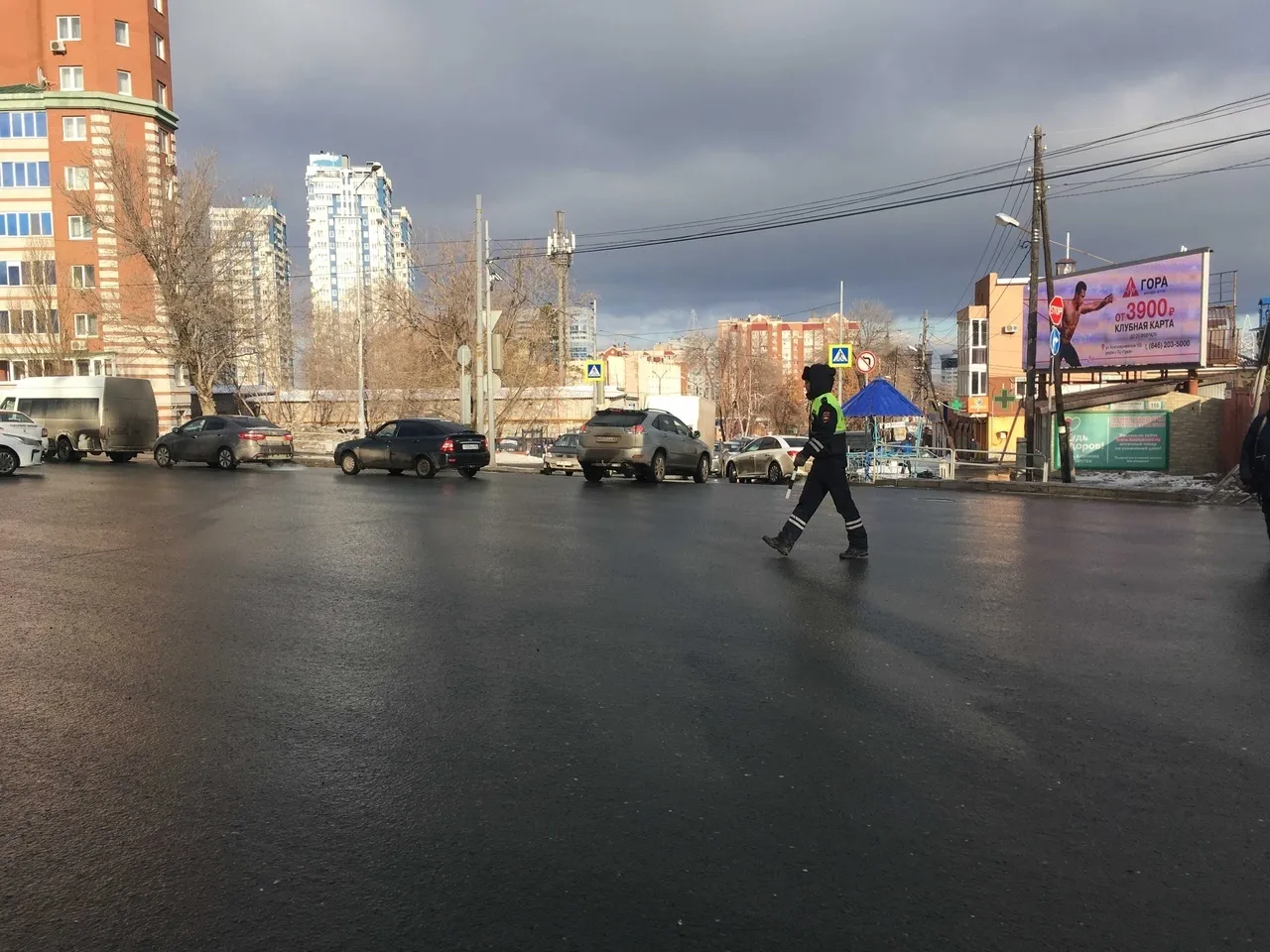 Сейчас движение на перекрестке регулируют сотрудники ГИБДД. Они будут работать, пока не запустят светофоры.