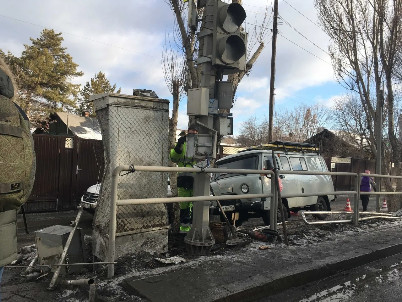 В частности, они производят ремонт трансформаторной будки, которая оказалась на пути автомобиля. Уже демонтированы смятые ограждения и разрезаны знаки, упавшие в результате инцидента.