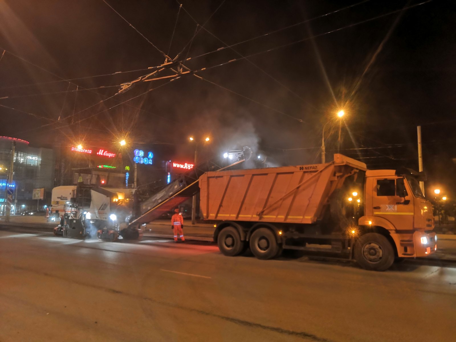 По словам мастера подрядной организации Владислава Буренина, привлечены пять единиц техники. Он уточнил, что комплексный ремонт захватит более 43 тысяч кв. м дороги и 10,5 тысячи кв. м тротуаров. Межрельсовое полотно уже обновили почти полностью. На дороге также заменят бортовой камень и проведут работы на инженерных коммуникациях.
