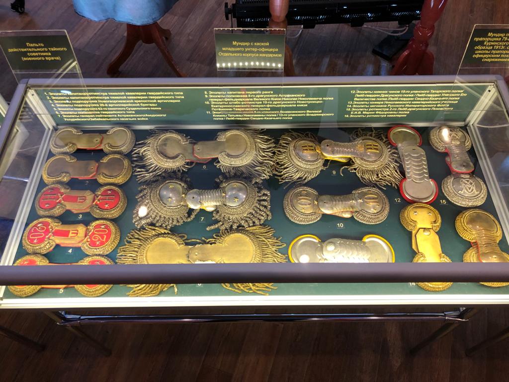 В новом музейном зале можно увидеть ордена и медали Российской империи, полковые знаки, георгиевские награды, эполеты, холодное оружие Русской императорской армии, знаки учебных заведений и других организаций царской России. Огромный интерес у посетителей выставки вызвала коллекция памятных вещей - их дарили военнослужащим в честь знаменательных событий в стране.