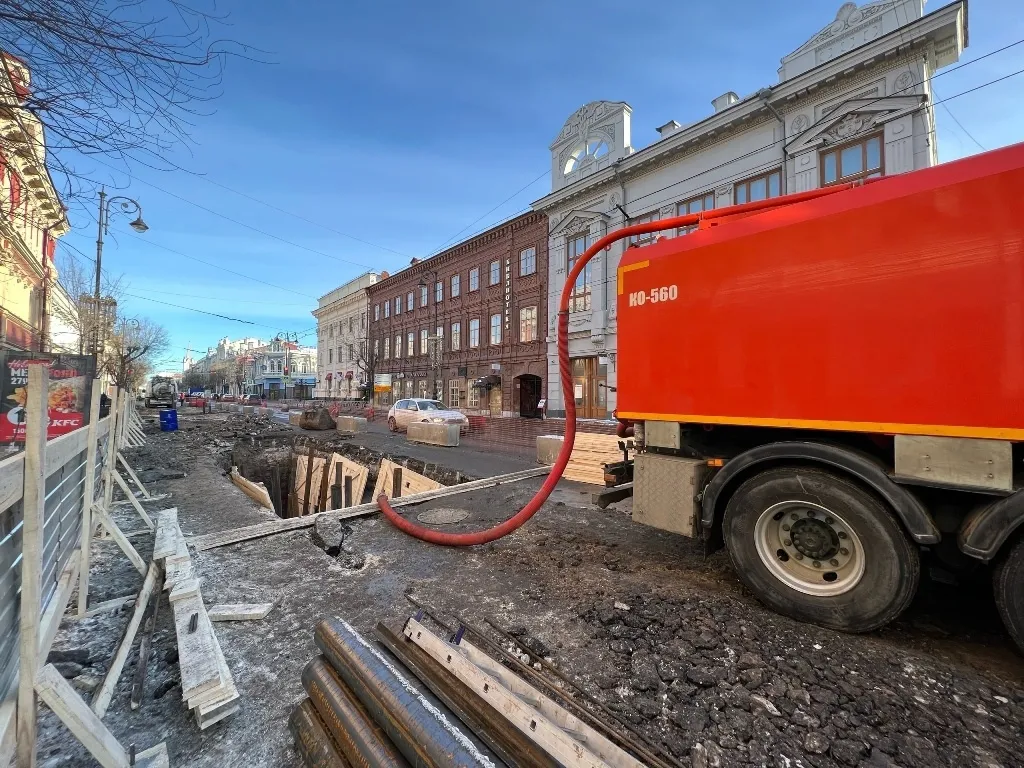 Работы ведутся на улице Куйбышева от Некрасовской до площади Революции. Здесь планируют заменить 170 метров изношенной трубы диаметром 315 мм на новый участок из полиэтилена. Кроме того, специалисты параллельно строят 8 новых колодцев на выпусках из прилегающих домов.