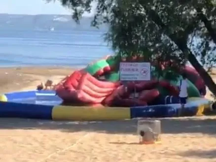 Заехал на пляж на Советской Армии. Кто-то самовольно установил небезопасный батут с бассейном. Сейчас разбираемая в ситуации. Совместно с полицией будем принимать меры. pic.twitter.com/g3SnnQnguV