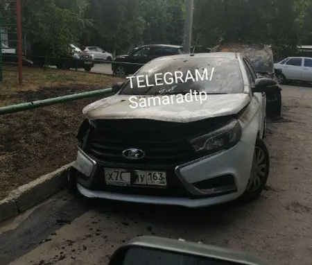 По данным ГУ МЧС по Самарской области, вызов на пульт дежурного поступил в 3:12. По приезде пожарные установили, что пламя охватило "Мерседес" и "Ладу Весту". Местные жители сняли на видео, как полыхали машины.