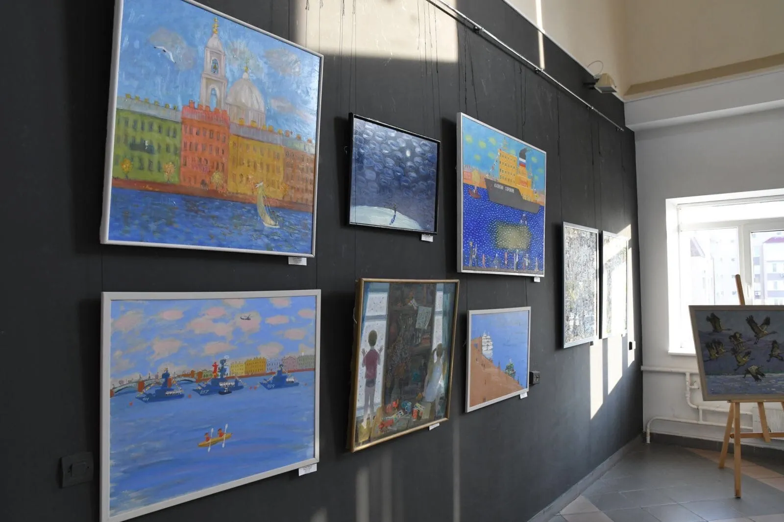 Пожалуй, ближе всего к детскому взгляду на мир картины Андрея Данилова – "День ВМФ", ”В порту". Они наивны и чисты. Будят воображение керамические фантазии Дины Богусоновой. Странные птицы, "Растущая луна", композиция "Сад", свиток "Каждый волен в своем выборе" - все это удивительные, причудливые создания, поселившиеся в мире художницы.