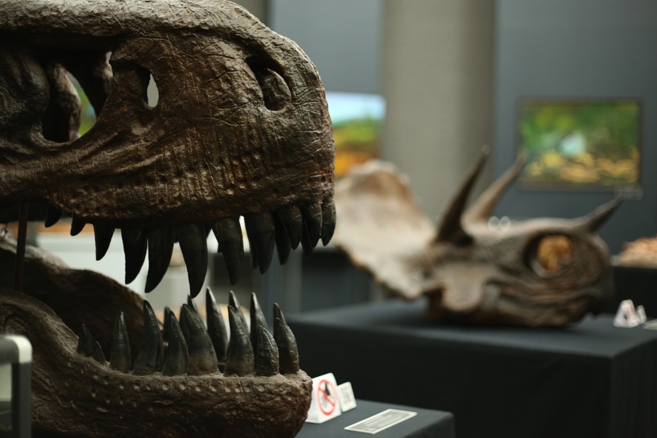 Отпечаток самого древнего из представленных на выставке многоклеточных организмов датируется 1 миллиардом лет до нашей эры. На выставке можно увидеть реконструкции черепов и скелетов обитателей планеты в разные геологические эпохи. Это и морские ящеры, и летающие рептилии, и гигантские триболиты, и другие представители древней фауны. Об огромных размерах доисторических животных можно судить по отпечатку следа хищного динозавра, обитавшего на Земле 150 миллионов лет назад. Или, например, по черепам тираннозавра и трицератопса, живших 72-66 миллионов лет до нашей эры.