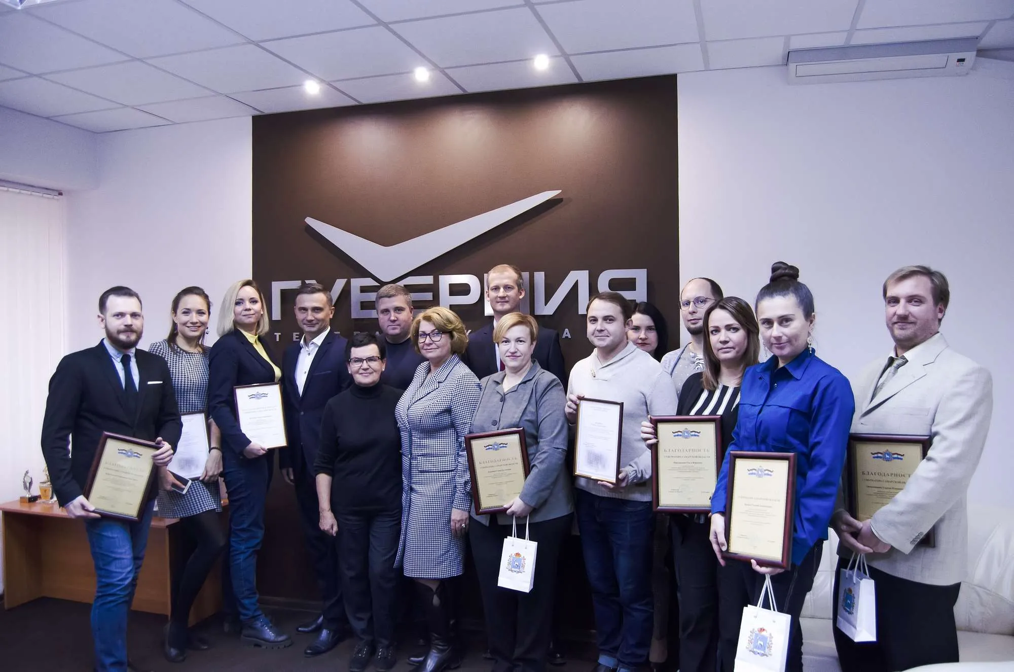 В год 10-летия ТРК "Губерния" её сотрудников отметили на высоком уровне. Руководитель департамента информационной политики администрации губернатора Самарской области Елена Летичевская вручила коллективу телерадиокомпании почетные грамоты, благодарности и благодарственные письма главы региона Дмитрия Азарова, а также администрации губернатора Самарской области.
