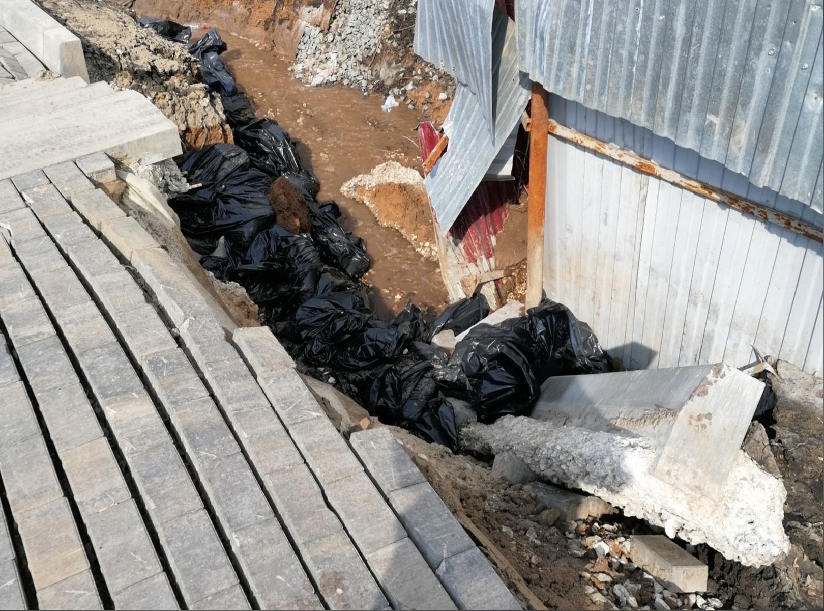 - Причина уже понятна: это не сработавшая система ливневой канализации, которая построена для сбора дренажных вод с двух школ. Сейчас она не подключена и не функционирует. За ее работу отвечал подрядчик, который полностью занимался сетями на этом объекте. Произошел излив воды, которая набралась в дренажной системе и затопила частную территорию, а уже с нее по откосу поступила на Пятую просеку, и в результате произошел размыв тротуара.