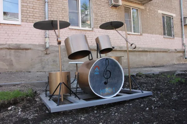 Металлические скульптуры созданы руками сотрудников коммунальных служб. На небольшом расстоянии друг от друга вдоль домов установлены аккордеон, гитара, саксофон, скрипка и барабаны, сообщает РКС-Самара.