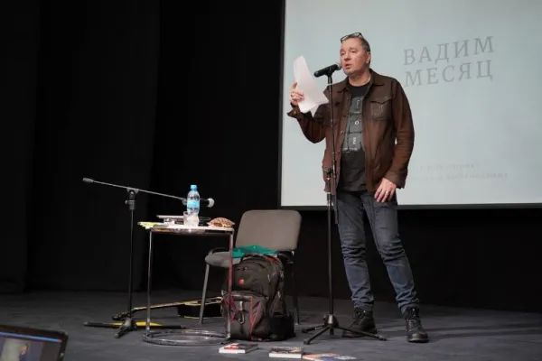 В Самаре Вадим Месяц оказался впервые. На встрече с любителями словесности он читал много своих стихов, в том числе и тех, которые были написаны под влиянием увлечения кельтской и славянской мифологией. Они собраны в сборнике "Мифы о Хельвиге". Напевал их под собственное гитарное сопровождение и даже а капелла. Читал и прозу, в том числе смешной рассказ "Второклассник Петров", герой которого угнал автомобиль у директора школы. Дарил желающим свои книги. И конечно же, отвечал на вопросы. Многие из них касались его пребывания в США, где он прожил 15 лет и откуда вернулся в 2006-м.