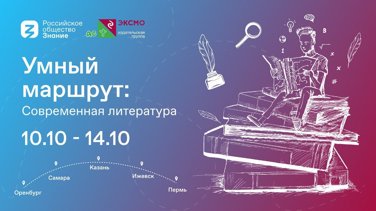 Авторы и сотрудники крупнейшей в России издательской группы впервые участвуют в рейсе просветительского проекта "Умный маршрут". Они проведут лекции и дискуссии для активных читателей, дадут рекомендации начинающим писателям и поэтам в пяти городах Приволжского федерального округа. Литературные форумы для молодежи также пройдут в Оренбурге, Казани, Ижевске и Перми. Чтобы участвовать, нужно пройти бесплатную онлайн-регистрацию на сайте Общества "Знание", выбрав свой город.