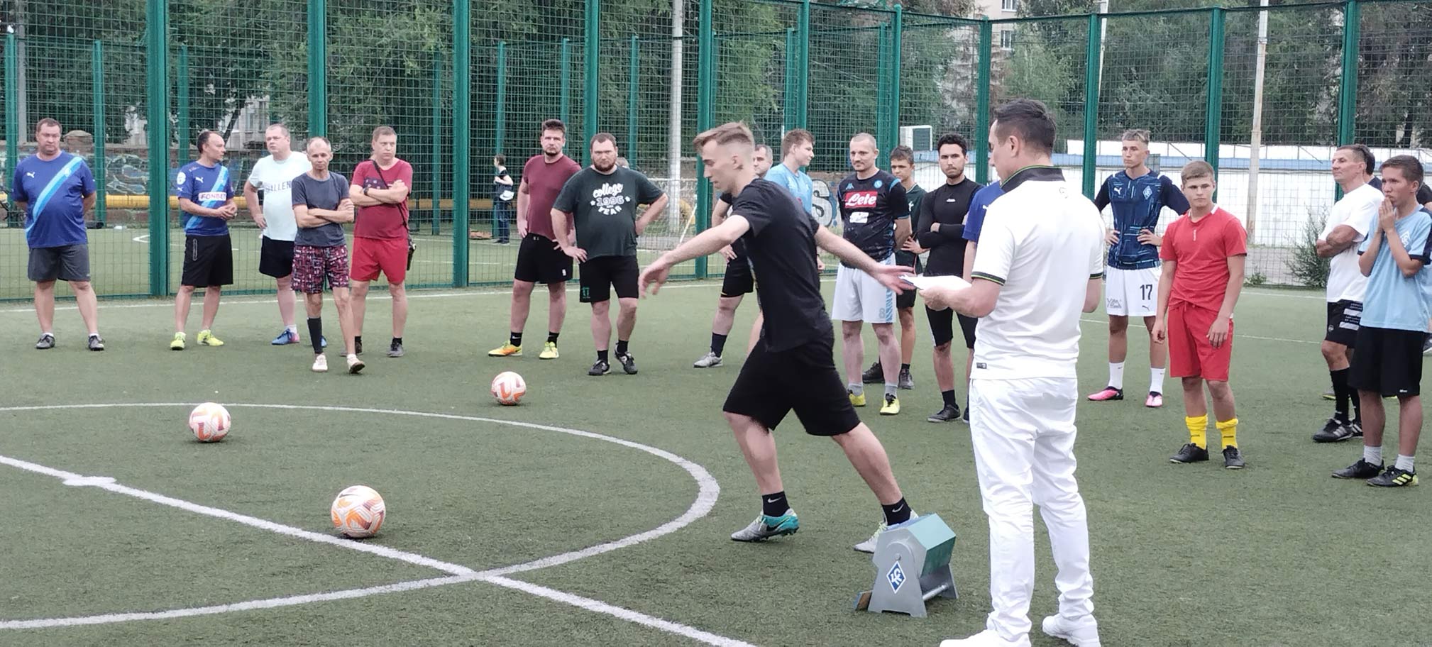 Первым из участников отбора это сделал болельщик с 35-летним стажем, самарец Александр. С первой же попытки он поразил перекладину мини-футбольных ворот и забронировал себе место в составе команды, главным тренером которой станет наставник "КС" Игорь Осинькин.