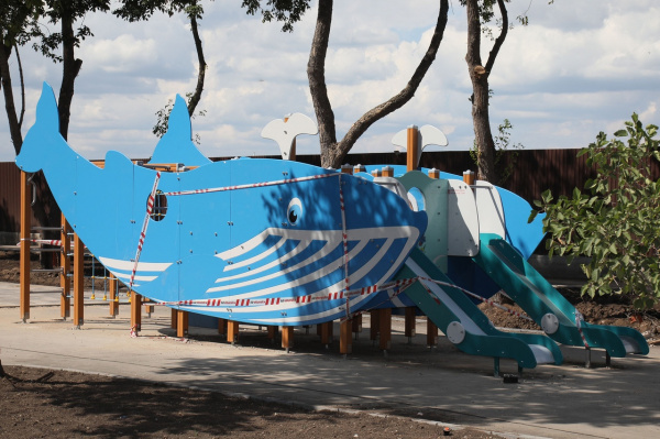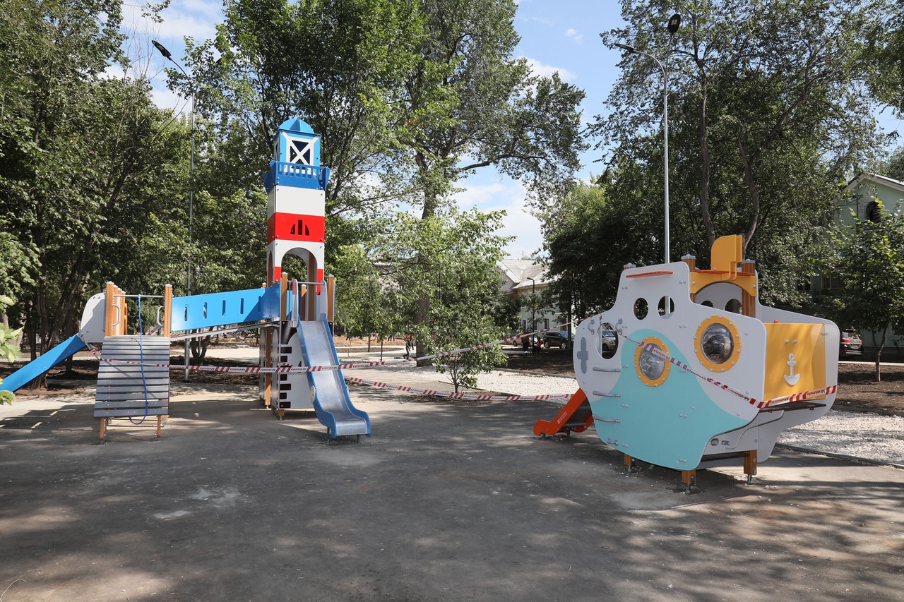 В Куйбышевском районе преобразится сквер Речников. Здесь обустроят пешеходные и зеленые зоны. Детвору уже радуют горки в форме кита, подводная лодка и маяк. Подготовили основания для двух батутов и территорию площадки для игровых видов спорта. На ней установили спортивное оборудование: ворота для гандбола и баскетбольные кольца. В центре сквера скоро забьет фонтан "Роза ветров" с подсветкой.