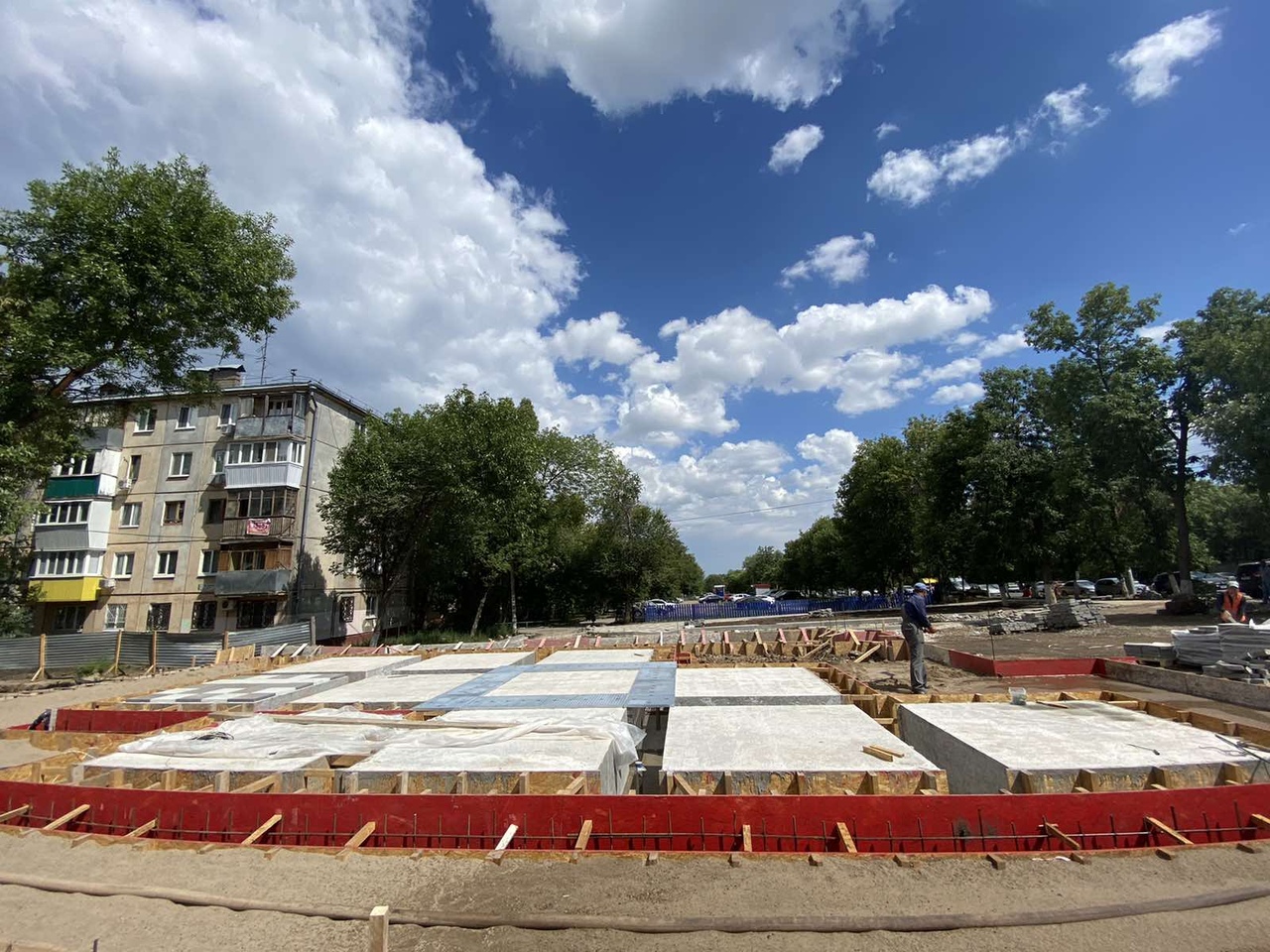 В Советском районе на пересечении улиц Авроры и Аэродромной рождается новый сквер на территории протяженностью более одного километра. Здесь уже уложили плитку и сделали уличное освещение. Готово и основание для будущего фонтана, которое сейчас облицовывают плиткой. Сквер украсят деревья липы, ели и рябины, декоративные растения и газоны. Планируют также установить на всей территории гирлянды в виде звездного неба.