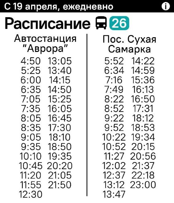 В областном центре скорректируют расписание автобусов № 26 (автостанция "Аврора" - поселок Сухая Самарка). На этом маршруте планируют увеличить количество транспорта, и он будет ходить чаще. Первый транспорт будет отправляться с "Авроры" в 4:50, а последний - с Сухой Самарки в 23:00. Трассы следования и остановки останутся без изменений. Также в Самаре увеличат количество автобусов № 78 и 79. Еще в областном центре пустят дополнительные автобусы после Пасхального богослужения в ночь на 20 апреля.