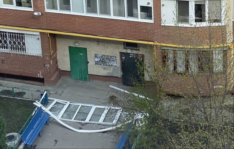 Судя по кадру, сделанному из дома напротив, рама упала с третьего этажа прямо во двор. Автор поста пишет, что в этот момент никого не было у подъезда. Обошлось без пострадавших.