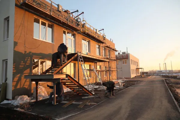 Сейчас у здания завершены внешние общестроительные работы по возведению коробки и штукатурке фасада. Также на финише и прокладка инженерных коммуникаций.