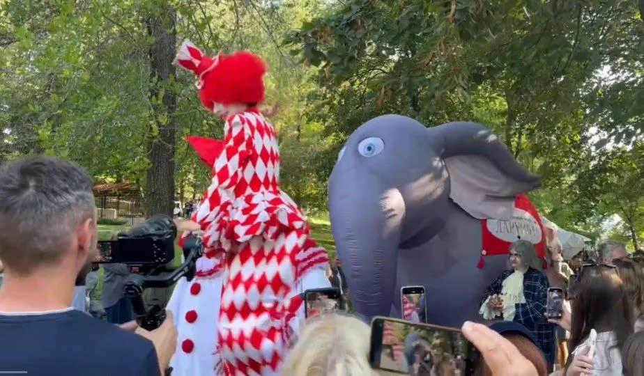 Участником "Пластилинового дождя" в этом году стало объединение актеров, режиссеров и художников "Эскизы в пространстве" из Москвы. Привезли "Ужин при свечах" (12+) - это действие, вдохновленное произведениями Михаила Булгакова. Спектакль в формате уличного театра: с ходулями, преувеличенно высоким столом и огромными канделябрами.