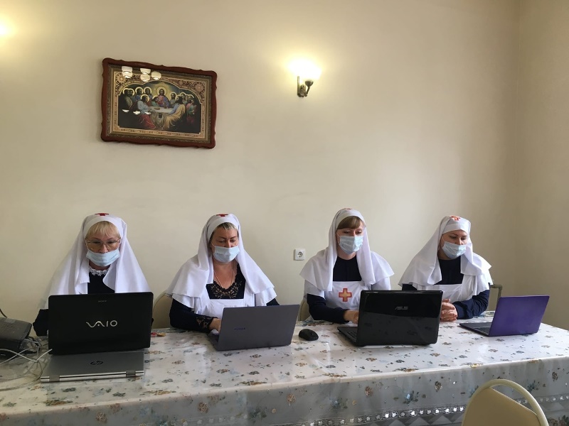 30 сестёр и братьев милосердия Елизавето-Варваринского сестричества прошли обучение по проекту, поддержанному международным грантовым конкурсом. Им преподавали анатомию, азы оказания первой медицинской помощи, основы дезинфекции и стерилизации, правильный уход и позиционирование человека и другие навыки в соответствии с профессиональным стандартом "Младшая медицинская сестра по уходу за больными". Занятия проходили с начала марта дистанционно и очно – на территории обители милосердия в честь великомученика Дмитрия Солунского.