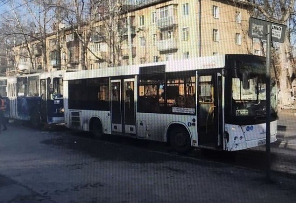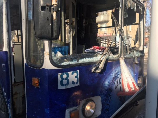 По данным полицейских, автобус № 34 стоял на ООТ "Ул. Севастопольская", когда в него врезался троллейбус. "Рогатым" управляла 35-летняя женщина. По предварительной версии, она не обеспечила постоянный контроль за движением транспорта. От удара в троллейбусе вылетело лобовое стекло.