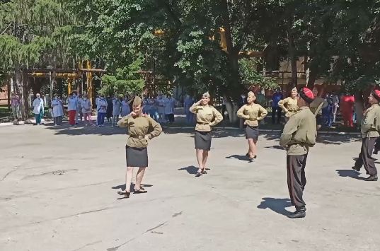 Мини-концерт во дворе самарского 426-го военного госпиталя устроили артисты ансамбля Дома офицеров "Волжские казаки". За годы войны здесь оказали помощь 25 тысячам красноармейцев. Больше половины из них вскоре вернулись на фронт. А сам госпиталь был награжден орденом Красного Знамени. Сегодня лечение в медучреждении проходят в том числе и ветераны Великой Отечественной.