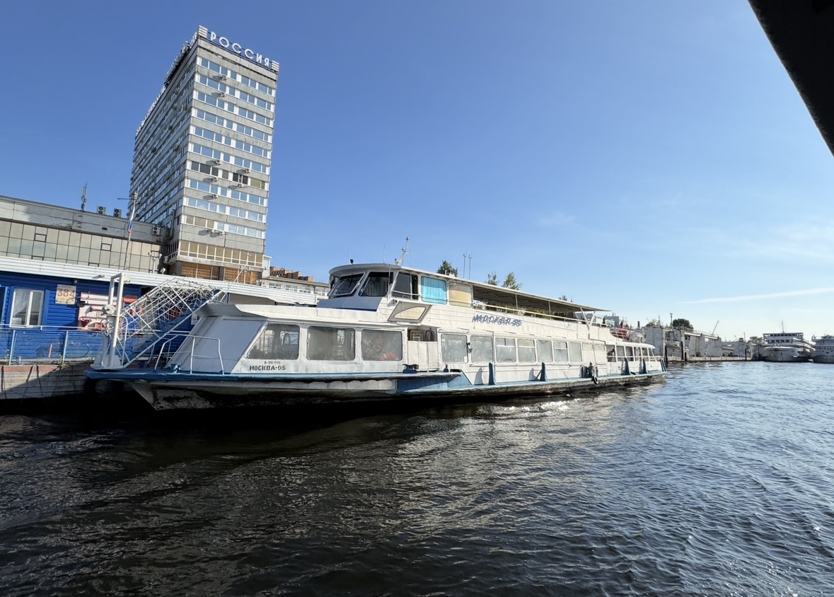 Возобновятся они только в следующем сезоне. Теплоход "Москва" курсировал по Волге от Речного вокзала и обратно.