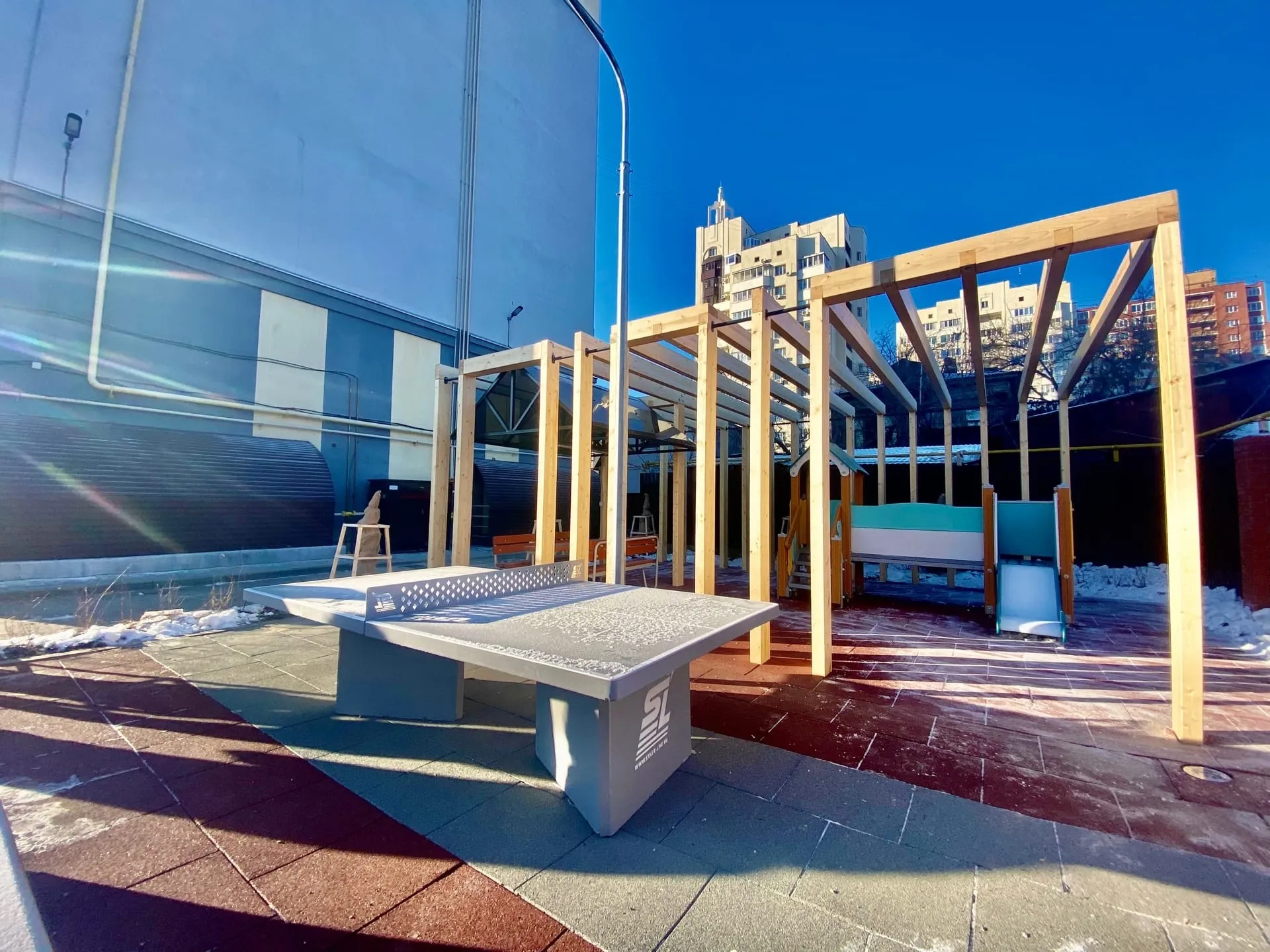 Во дворе дома № 90 на улице Вилоновской появилась новая территория для отдыха. Теперь здесь есть детская площадка, скамейки и теннисный стол. Елена Бондаренко написала на своей странице ВКонтакте: