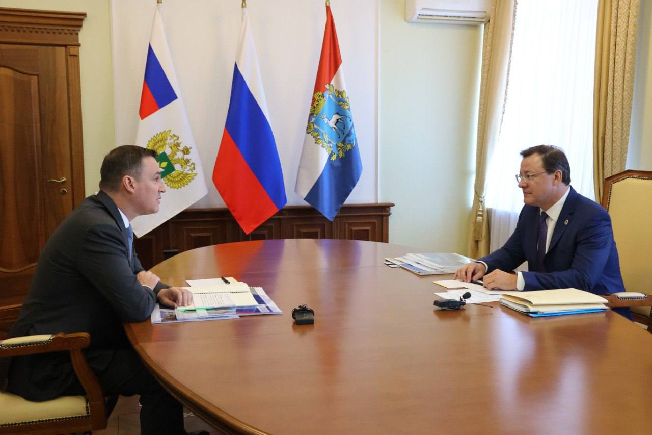 Открывая встречу, глава нашего региона приветствовал министра и поблагодарил его за то, что в плотном графике он нашел время приехать в Самарскую область: