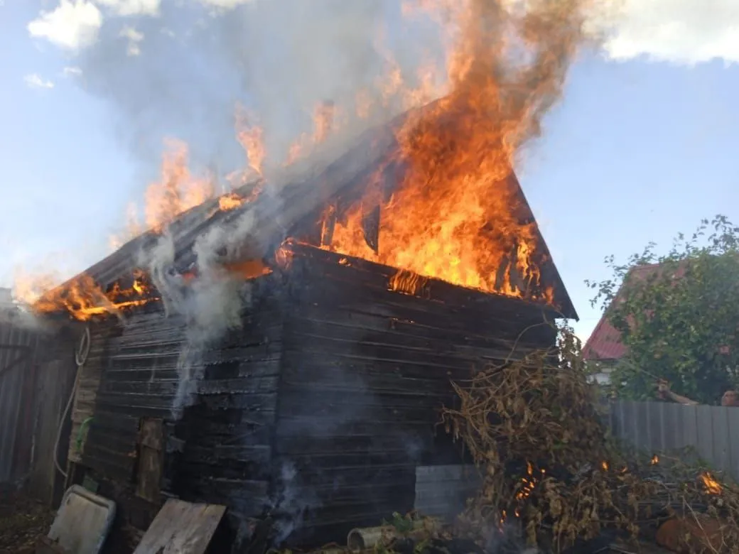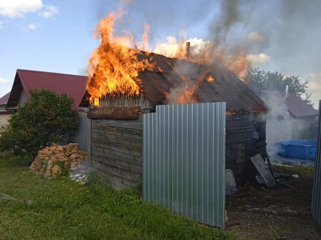 Когда они прибыли, оказалось, что открытым пламенем горит деревянная баня и огонь уже охватил здание на 20 "квадратах".