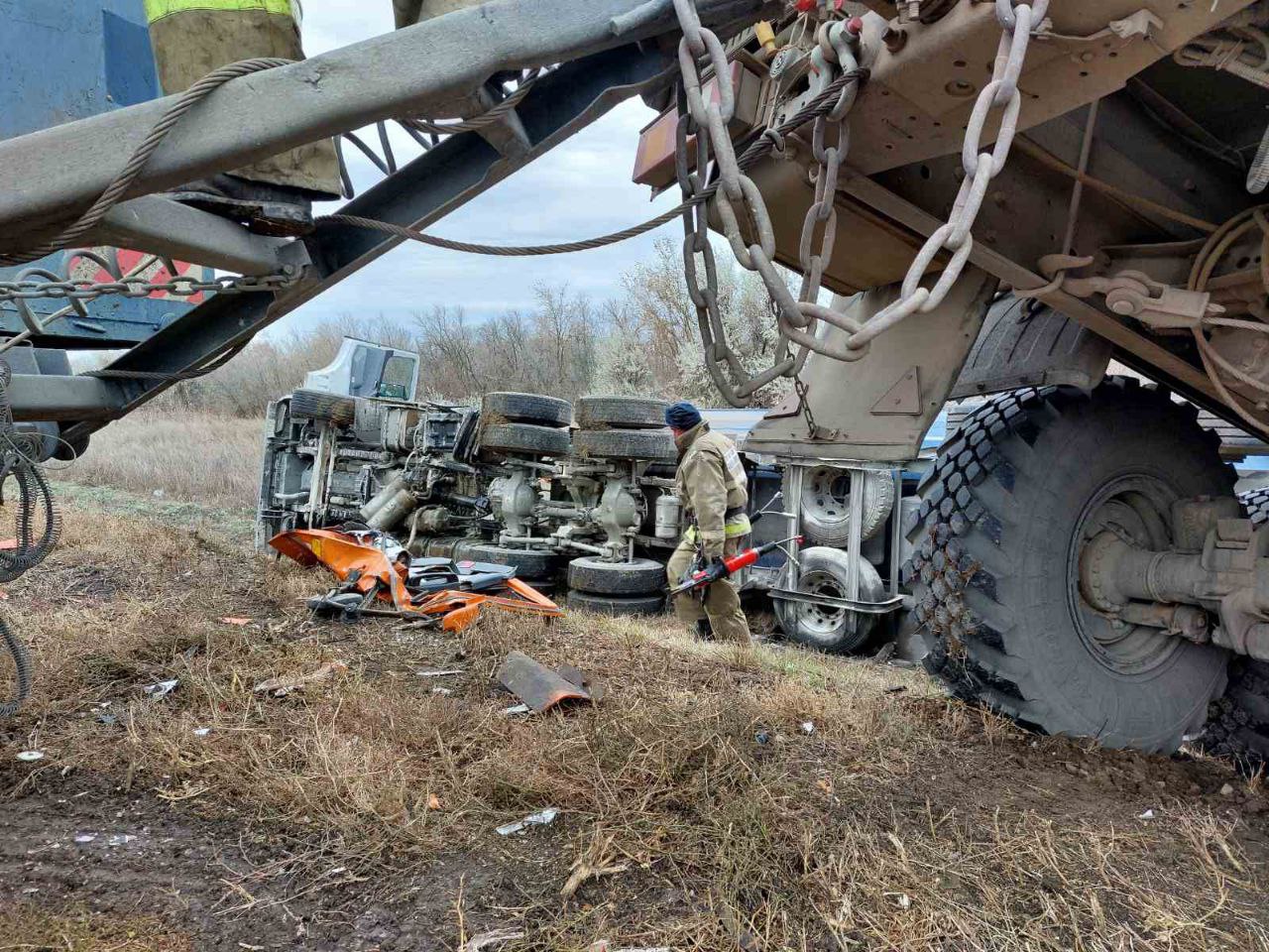 Авария произошла 19 октября в Большеглушицком районе. На трассе Большая Глушица - Пестравка лоб в лоб столкнулись два большегруза. Один человек погиб и один ранен. На месте помимо сотрудников Госавтоинспекции и медслужбы работали пожарные-спасатели части № 132. Они участвовали в ликвидации последствий ДТП: помогли извлечь пострадавших из транспортных средств, отключили автомобильные аккумуляторы.