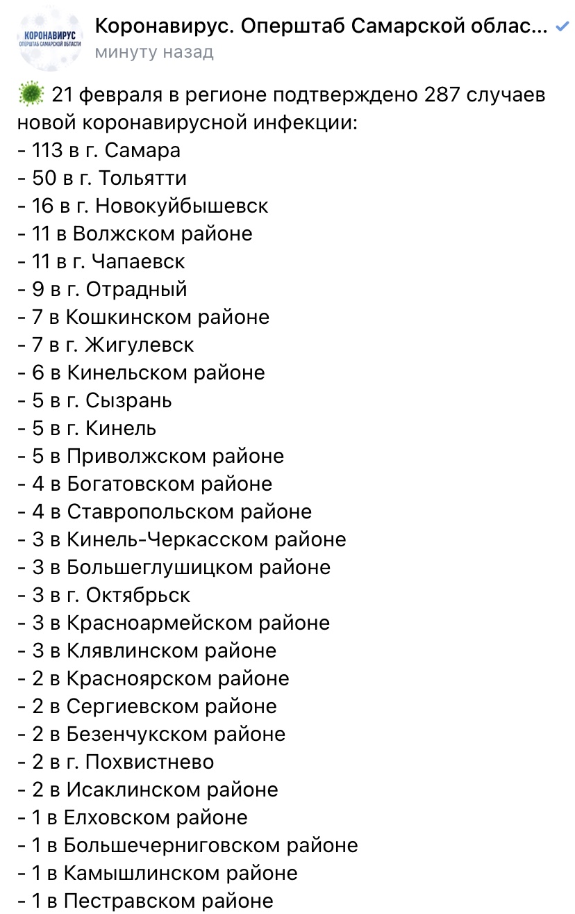 Ещё 13,5 тысячи россиян заразились COVID-19 / Летом 2021 года в Самаре заработает новый COVID-госпиталь / Где в Самарской области 19 февраля нашли коронавирус у 292 жителей
