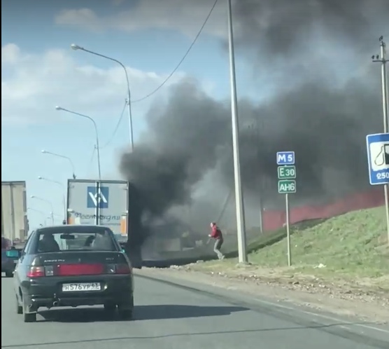 В Самарской области в воскресенье. 26 апреля, произошло ЧП. По словам очевидцев, неподалеку от Тольятти у фуры на ходу загорелись колёса. В результате инцидента водитель остановился на обочине трассы М5 "Урал". Он начал самостоятельно тушить пожар.