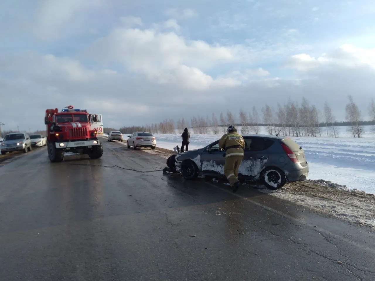 Легковой автомобиль 3 января двигался по трассе Клявлино - Шентала. На 6 км пути съехал в кювет и опрокинулся. На месте происшествия работали пожарные-спасатели ПСЧ № 119. Они отключили аккумулятор и стабилизировали транспортное средство. В аварии никто не пострадал. Машина получила механические повреждения. Сотрудники Госавтоинспекции устанавливают все обстоятельства произошедшего. Еще одно ДТП произошло сегодня утром в Похвистневском районе Самарской области.