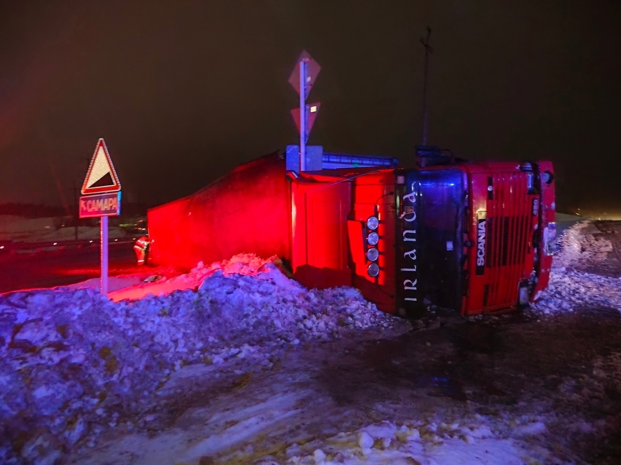 В Самарской области ночью 20 декабря на трассе опрокинулся большегруз