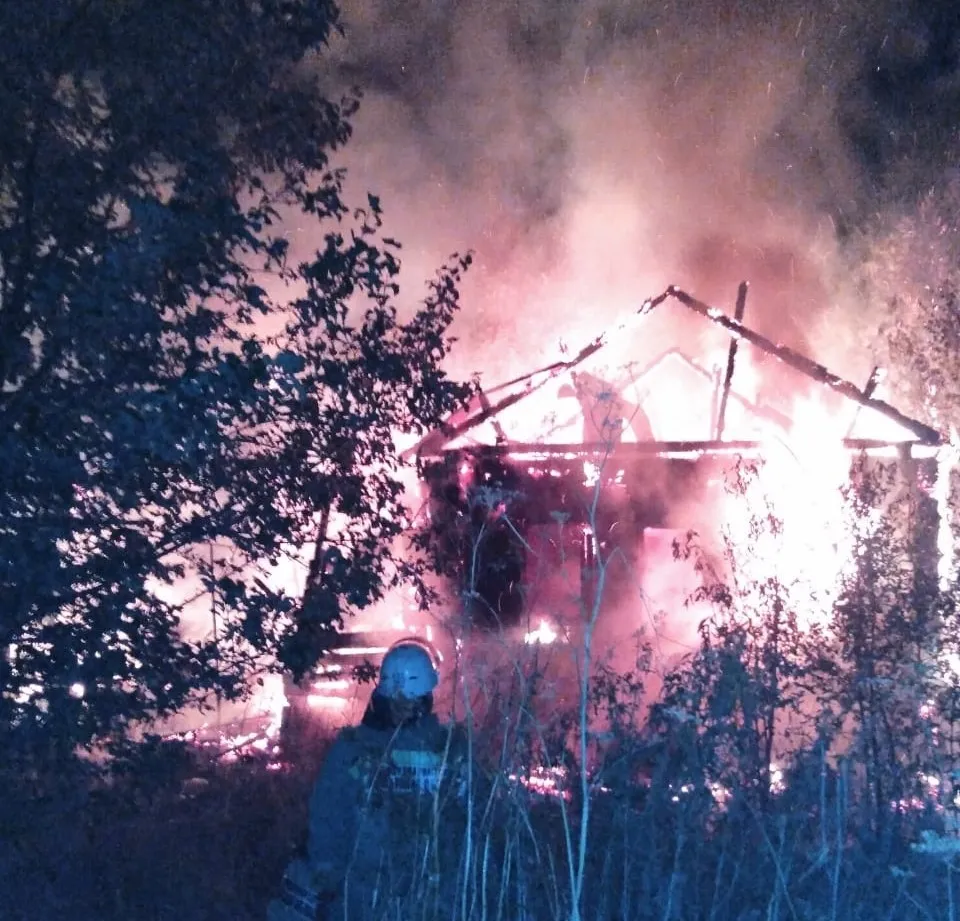 На вызов незамедлительно отправилась пожарная бригада. На месте пожарные установили, что горит нежилой дом и баня на площади 100 квадратных метров, существует угроза распространения пожара по сухой траве.