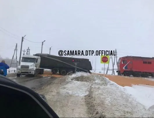 1 февраля в Самарской области на трассе произошло серьёзное ДТП. В Безенчукском районе фура с прицепом оказалась на пути вагона обслуживающего поезда.