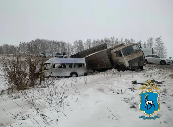По данным ведомства, 52-летний водитель МАЗа двигался по дороге Сызрань – Шигоны - Волжский утес со стороны М-5 "Урал" в направлении села Шигоны. На 5-м километре при обгоне он столкнулся с микроавтобусом "Форд", который ехал в попутном направлении. Оба транспортных средства съехали в левый кювет.