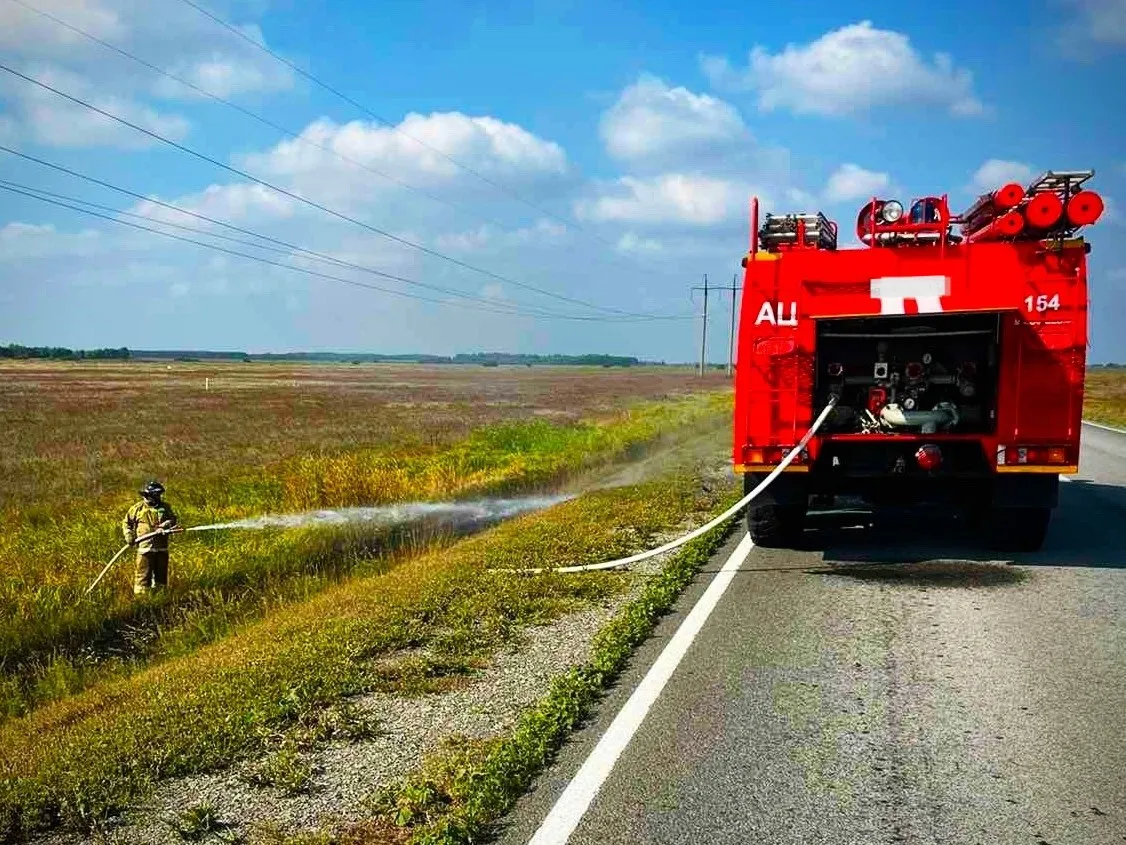 Информация о происшествии появилась в 9:55. В тот момент вдоль дороги около сельского поселения Макарьевка отдельными очагами горела сухая трава на 70 кв. м.