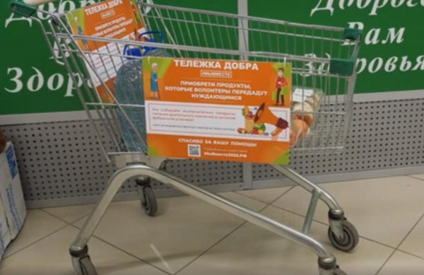 В магазинах Ставропольского района появились "Тележки добра". Здесь каждый может оставить продукты для нуждающихся.