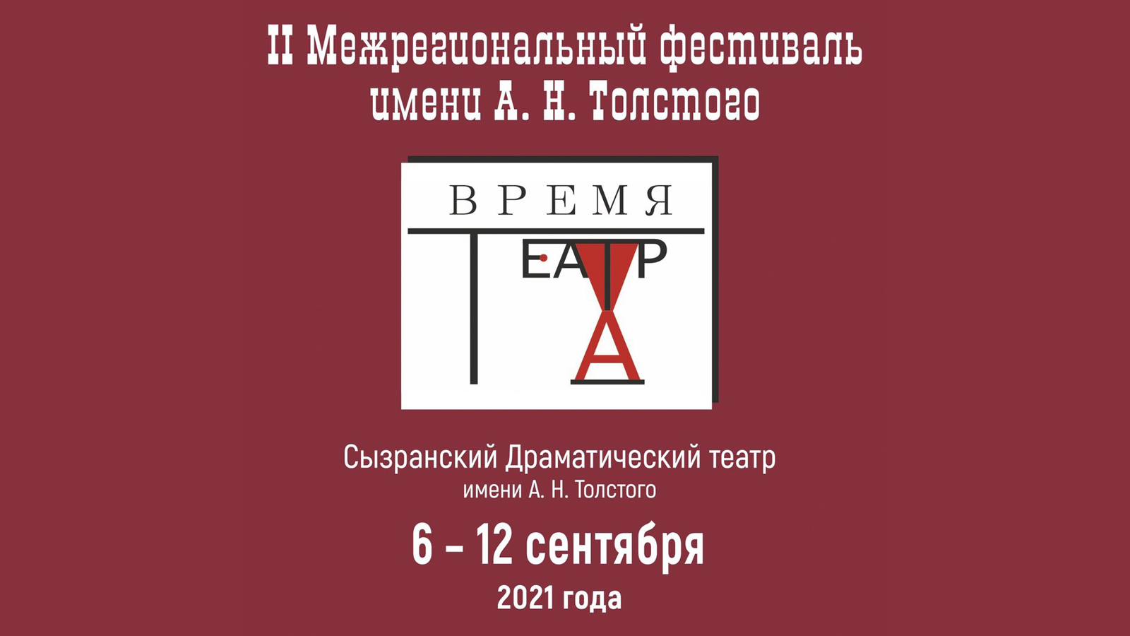Программа II Межрегионального фестиваля им. А.Н. Толстого "Время театра" 6-12 сентября 2021 г.