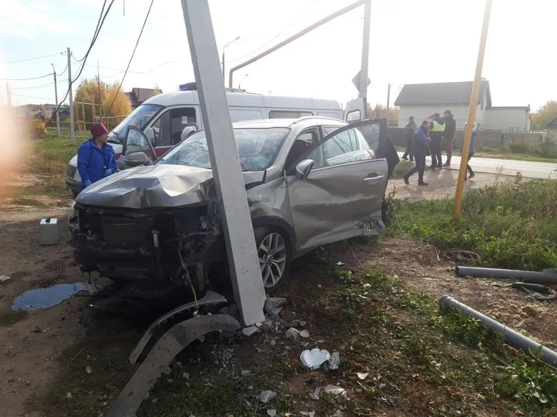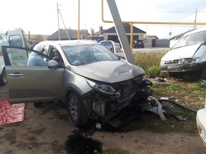 Он разогнался и, не справившись с управлением, съехал с дороги. Там он влетел в дорожный знак, опору газопровода, столб ЛЭП и стоящие автомобили: пассажирскую "Газель" и вторую "Киа".