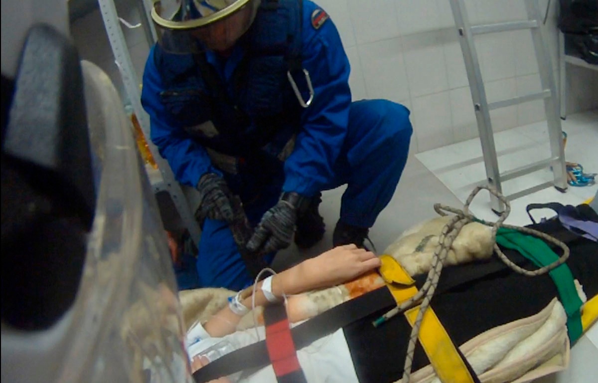 Сотрудники поисково-спасательной службы прибыли на место происшествие и помогли девочке выбраться. Они поместили ее на жесткие носилки, подняли наверх и передали врачам скорой помощи.
