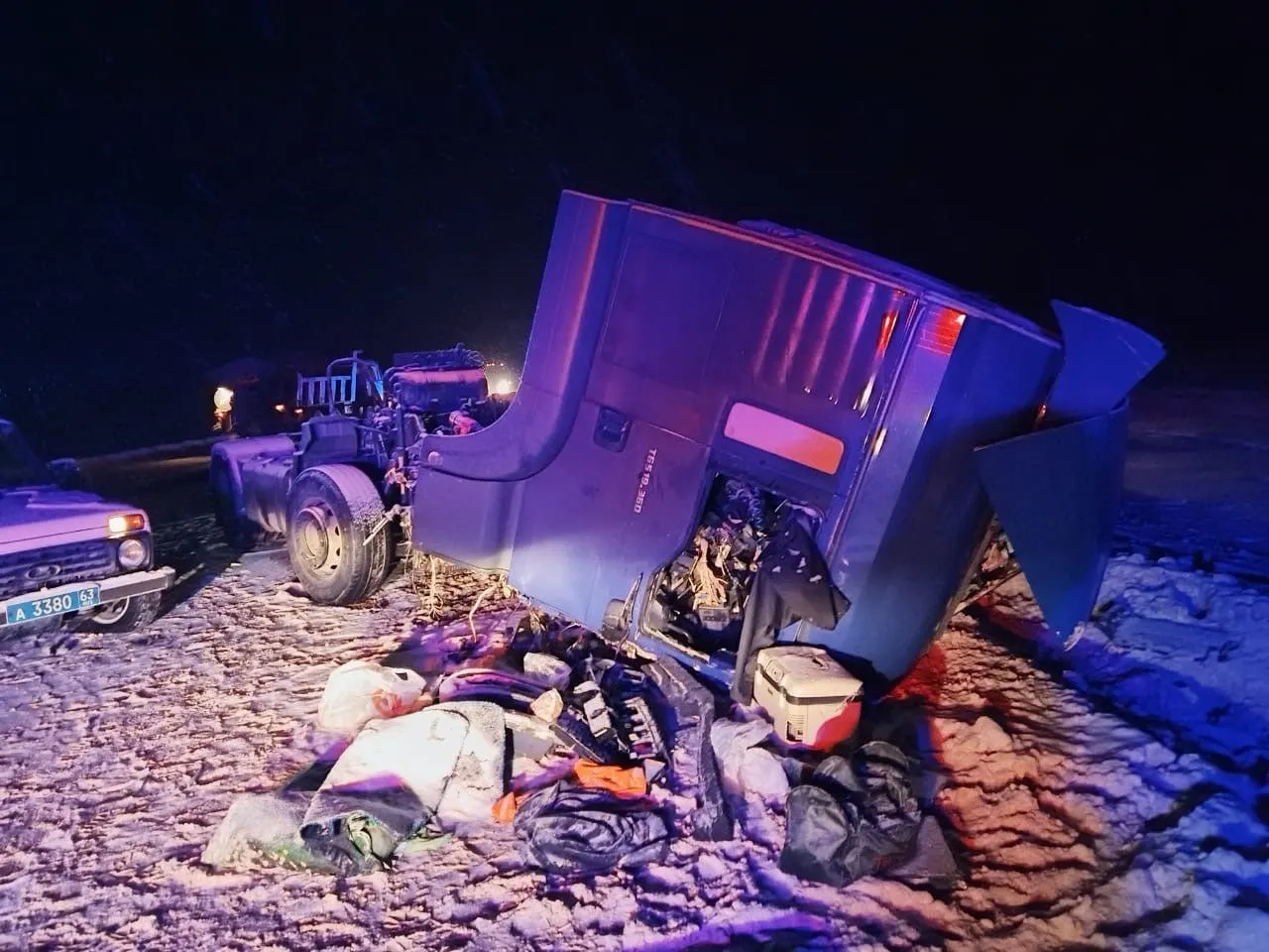 Масштабную аварию, случившуюся в 00:15, спровоцировал 58-летний водитель грузовика МАН. Двигаясь по М5 "Урал" со стороны Самары в направлении Москвы, буксируя на жесткой сцепке другой МАН, он в условиях снегопада выехал на встречную полосу, где влетел в фуру – по совпадению той же марки МАН в составе с прицепом. Водитель грузовика, который осуществлял буксировку, погиб на месте ДТП до приезда медиков. Его 59-летнего пассажира доставили в больницу.