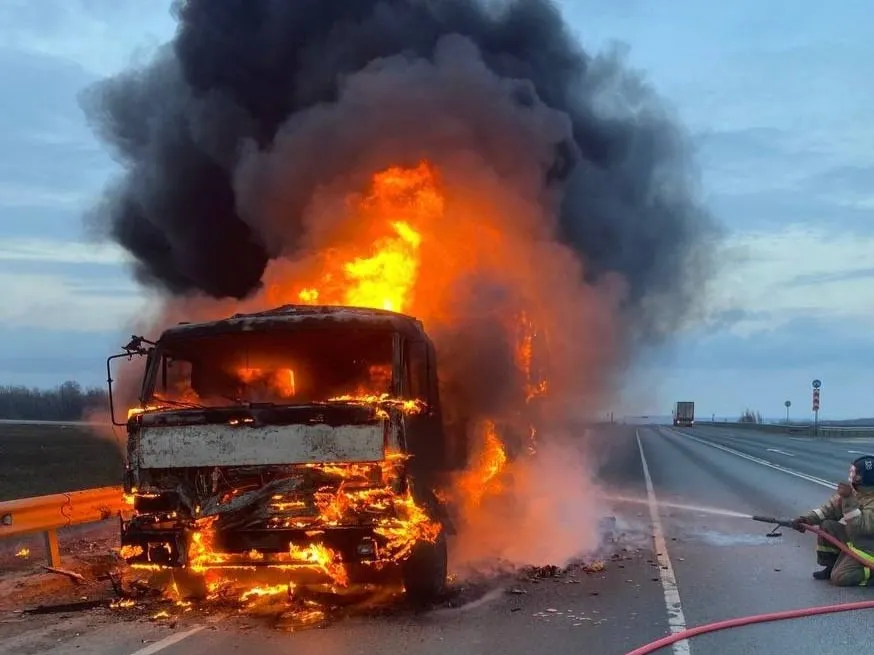 В Самарской области утром 3 апреля на дороге загорелся КамАЗ