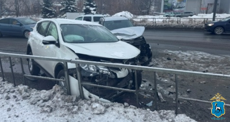 На ул. Демократической Hyundai Creta врезался во встречный Toyota RAV4. Пострадала 65-летняя женщина - водитель кроссовера.